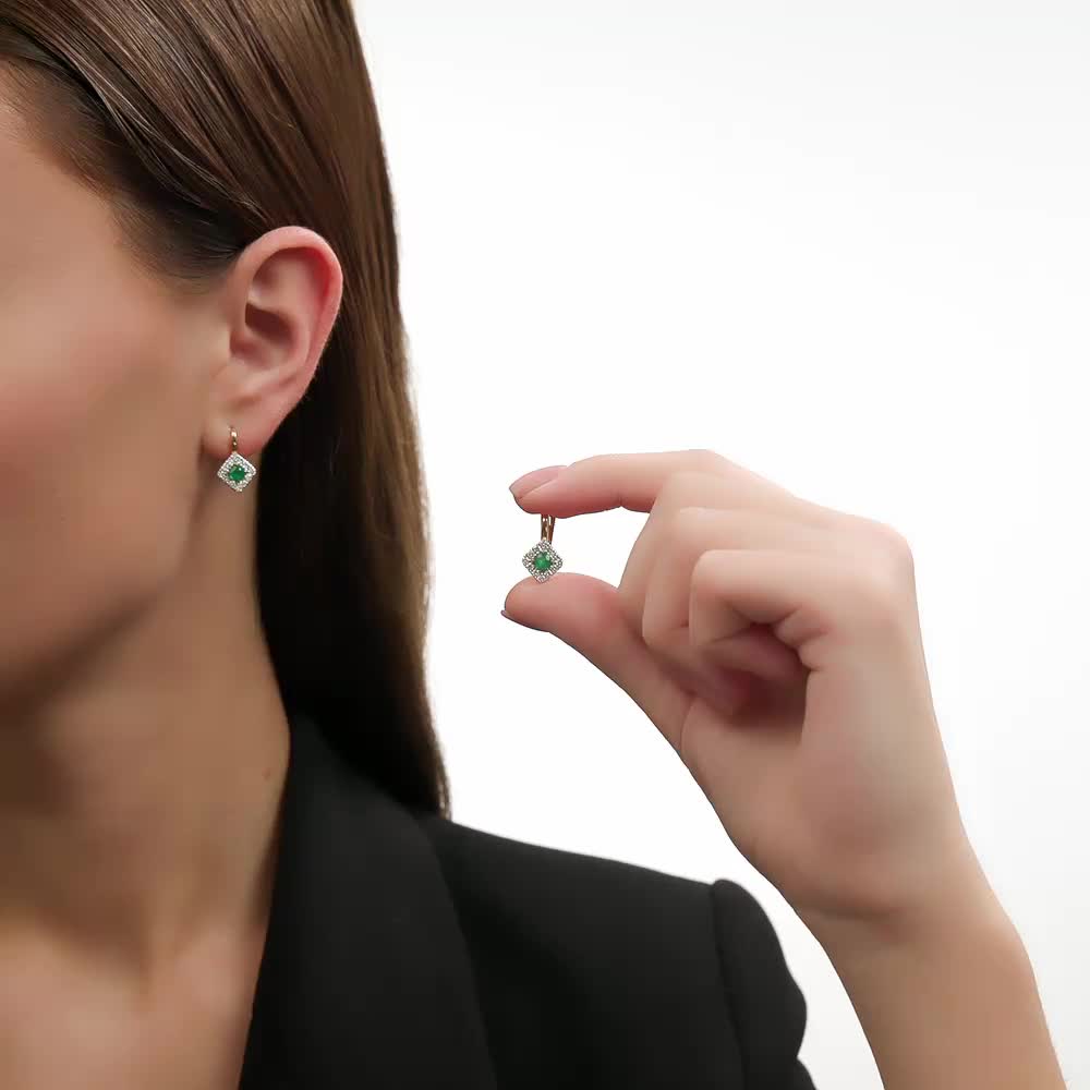 Золотые серьги с бриллиантами природными и изумрудами природными