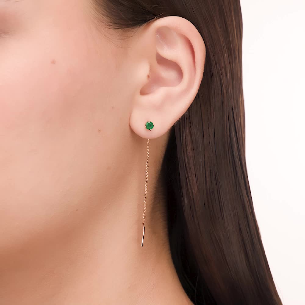 Серьги с 2 изумрудами природными, 0.45 карат, цвет 3, чистота 3, тип огранки В;