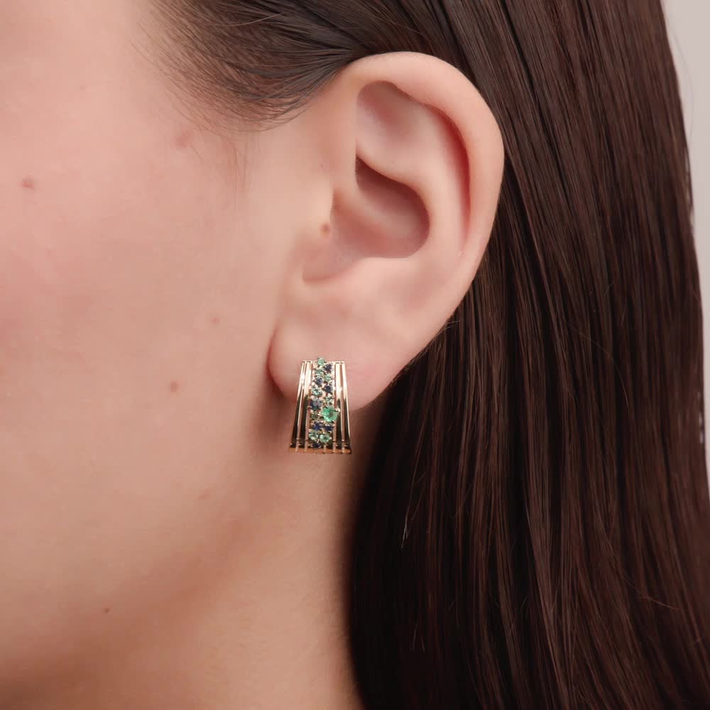 Стильные серьги - строгие линии, при этом фантазийная дорожка из камней. В моих изумруды светлые и почти прозрачные, а сапфиры наоборот глубокого тёмного цвета. Мне очень понравились! В жизни выглядят лучше, чем на фото. Удобная посадка, даже на тонкую мочку. Размер всей серёжки 1,5 см, и прокол закрыт. Жду к ним кольцо своего размера :)