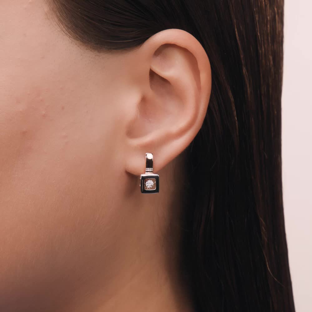Серьги с 2 бриллиантами природными, 0.2 карат, огранка круг 57 граней, цвет 3, чистота 6, тип огранки А;