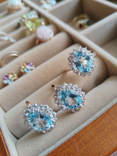 Впечатляющий комплект💎💎💎 Шикарные топазы с горным хрусталем.