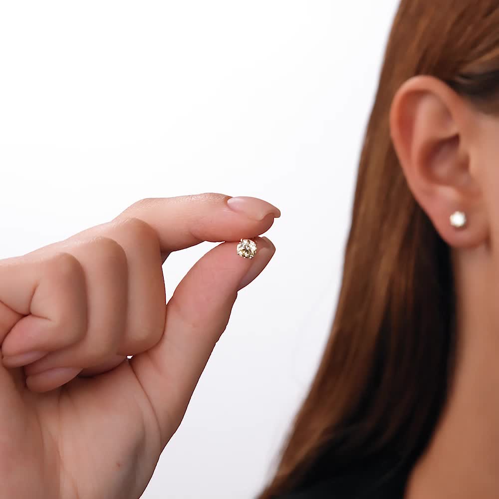 Серьги с 1 бриллиантом желтым природным, 0.51 карат, огранка круг 57 граней, цвет 8-5, чистота 4, тип огранки А;