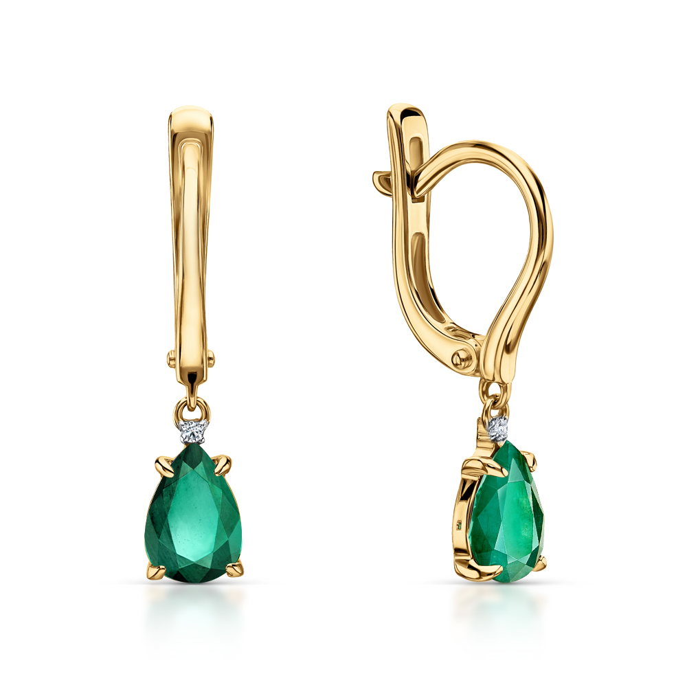Золотые серьги с бриллиантами природными и изумрудами природными