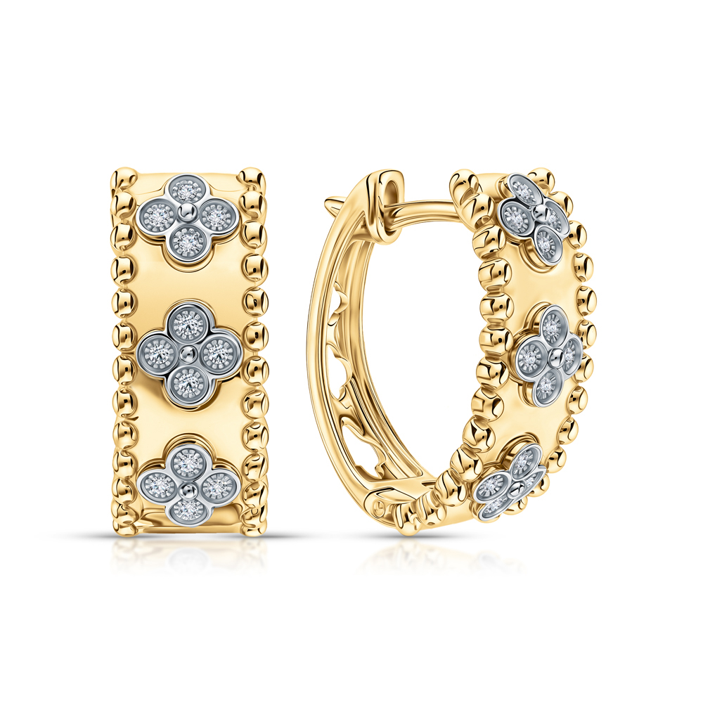Серьги с 24 бриллиантами природными, 0.1 карат, огранка круг 17 граней, цвет 2, чистота 3, тип огранки А;