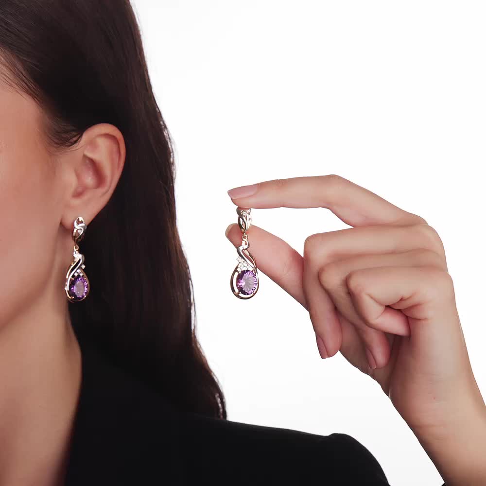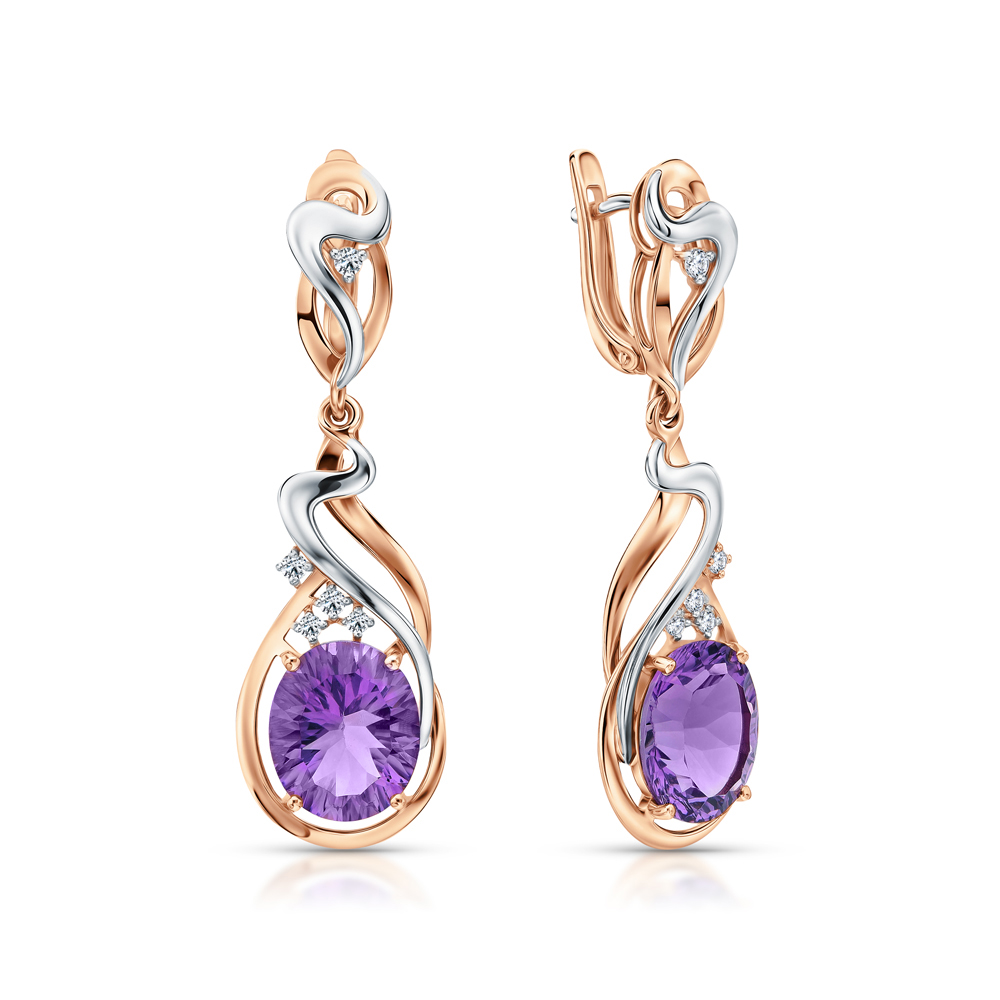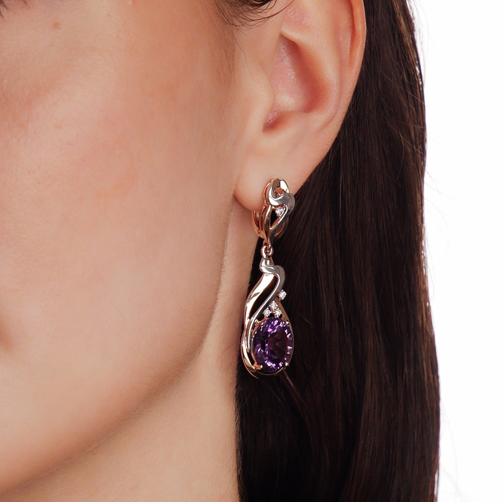 Золотые серьги с бриллиантами природными и аметистами природными