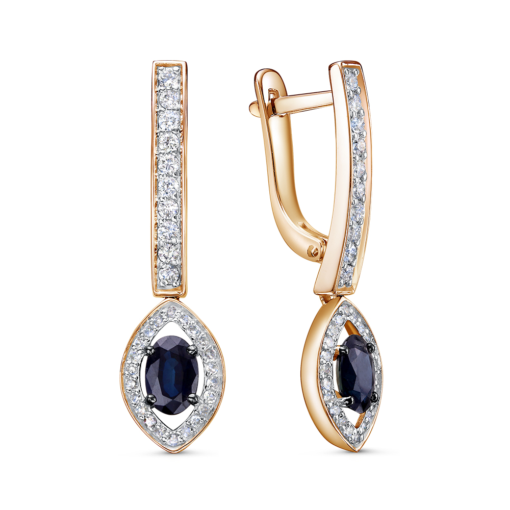 Золотые серьги с бриллиантами природными и сапфирами природными