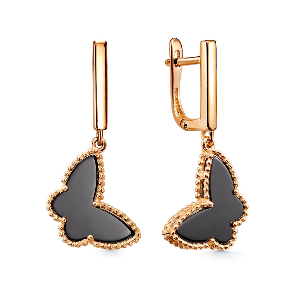 Золотые серьги с ониксом природным