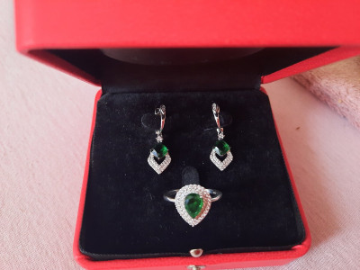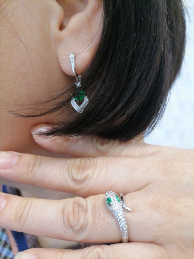 Очень шикарно смотрятся серьги и кольцо . Серьги легкие. С первого взляда влюбилась в комплект и купила. Знакомые сразу замечают эту красоту .