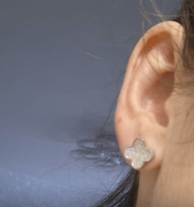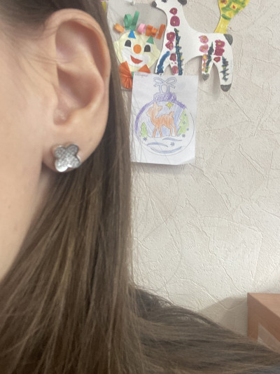 Серьги тяжёлые, интересного дизайна, замок - бабочка в данном случае очень подходит, серьги прилегают и смотрятся прекрасно. Очень удачное украшение. Подарок , подходящий к любой форме лица, и любому образу. Надеюсь , фианиты закреплены на совесть. Иначе будет жаль, что мои 5 баллов, что ставлю украшения, не оправдают доверия.
