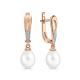 Золотые серьги с бриллиантами природными и жемчугами природными культивированными