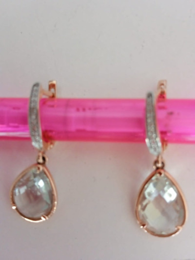 Серьги с 10 бриллиантами природными, 0.02 карат, огранка круг 17 граней, цвет 2, чистота 2, тип огранки А;