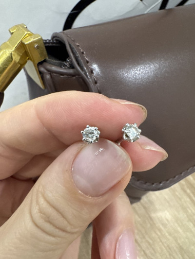 Серьги с 2 бриллиантами природными, 0.3 карат, огранка круг 57 граней, цвет 4, чистота 6, тип огранки А;