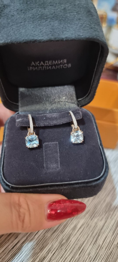 Серьги заказывали через приложение. Так как в наличии их небыло. Впечатления превзошли все ожидания. Вначале думали, что трансформеры( топаз снимается), при получении , оказалось , что ошиблись. Но не огорчились Топаз по размеру внушительный, красиво переливается на свету в ансамбле с природными брилиантами. В серьги влюбились сразу. Хотим ещё колечко приобрести.