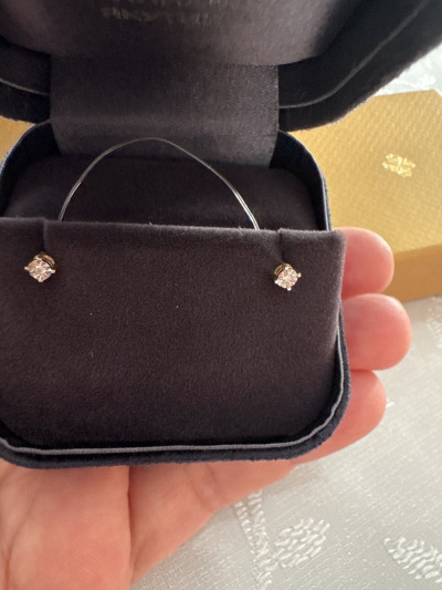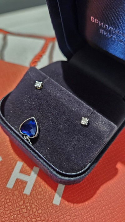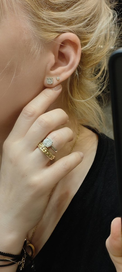 Очень хорошенькие пусеты, бриллиантик за счет обрамления выглядит больше и на свету очень играет))). Приятный бонус в виде подвески ) Спасибо консультанту Снежане за помощь 💖