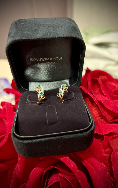 Очень красивые серьги с изумрудами и бриллиантами.Рекомендую. Покупала под кольцо с изумрудом.