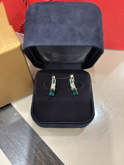 Золотые серьги с бриллиантами природными и изумрудами выращенными