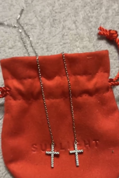 Нежные легкие серьги- продевки с крестиками, украшенные фианитами