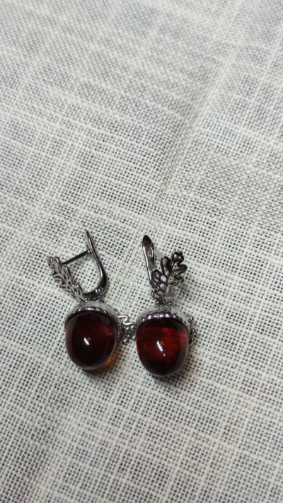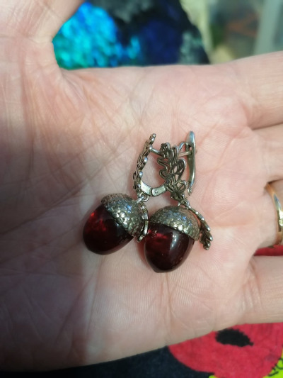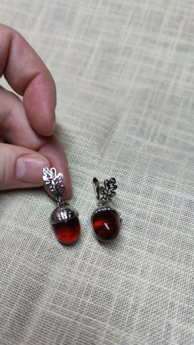 Серьги напоминают сказку три орешка для Золушки, купила не раздумывая. Янтарь красивого тёмного цвета.