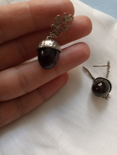 Удивительный, необычный набор получился: серьги + кулон. Ношу нечасто,но он всегда меня радует. Очень милая вещь )