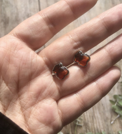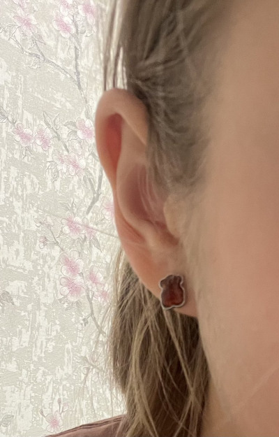 Так получилось, что полюбила янтарь :) Решила, что срочно надо серьги с янтарём. Нашла эти серьги, с янтарём, с медведями, всё, как я люблю, в общем. Серьги супер! Милые. Ношу полгода примерно Застёжка-гвоздик, не погнулись, не потемнели. Заглушка тугая, прочная. Янтарь красивый, тёмный. Хочу и других мишек теперь