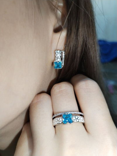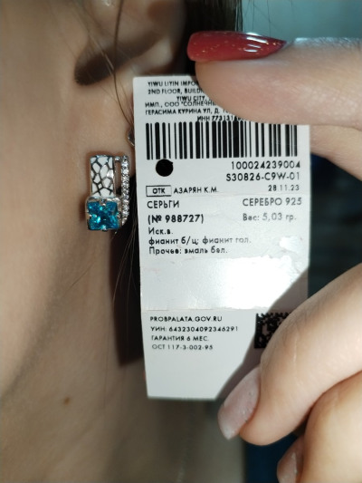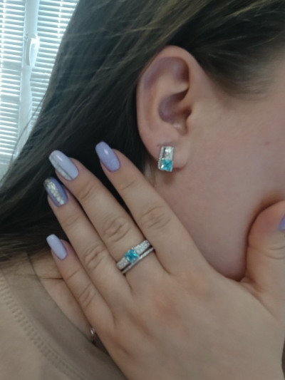 Не смотря на маленький размер сережек, на ушке смотрятся гармонично, сочетание белого и голубого великолепно. Брала с колечком.