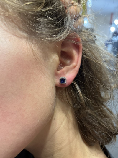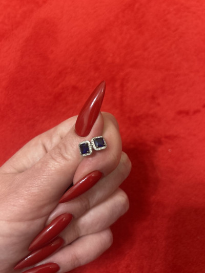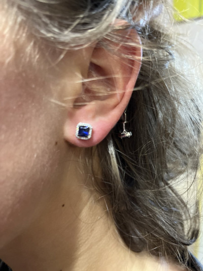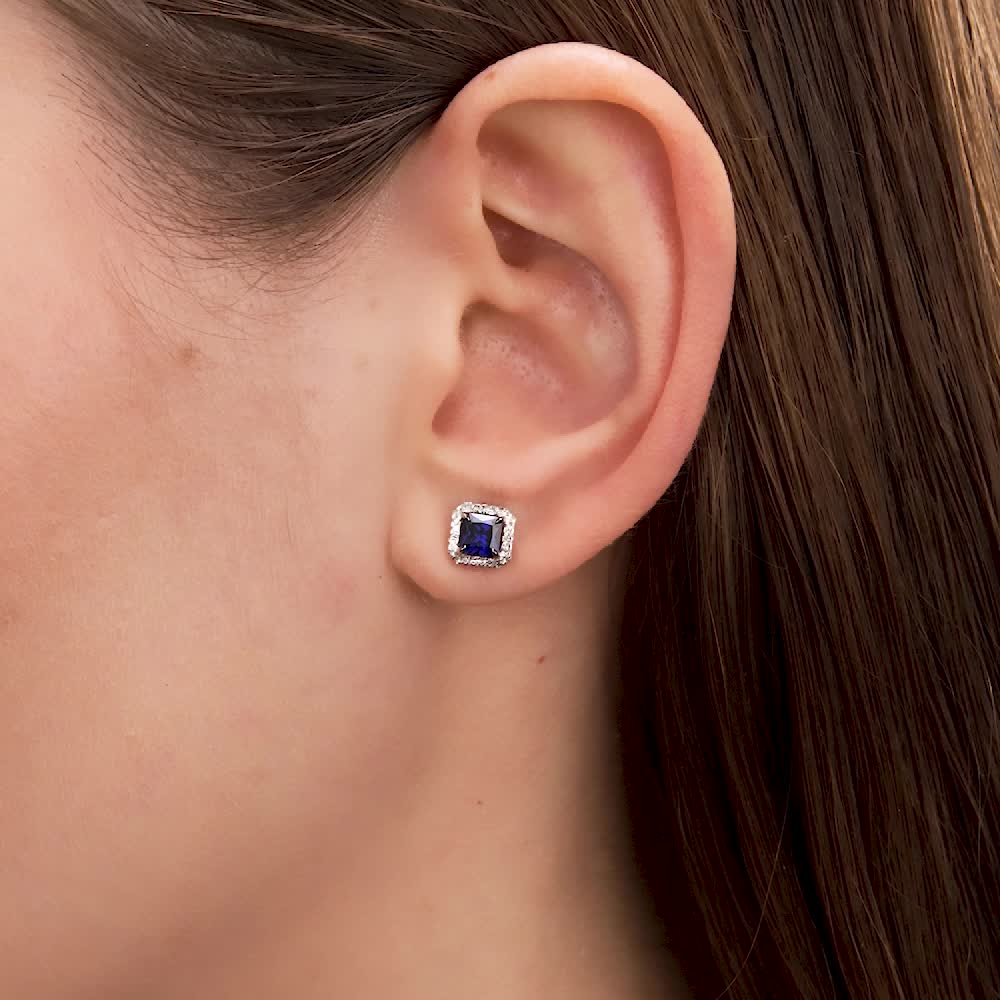 Золотые серьги с бриллиантами природными и сапфирами выращенными