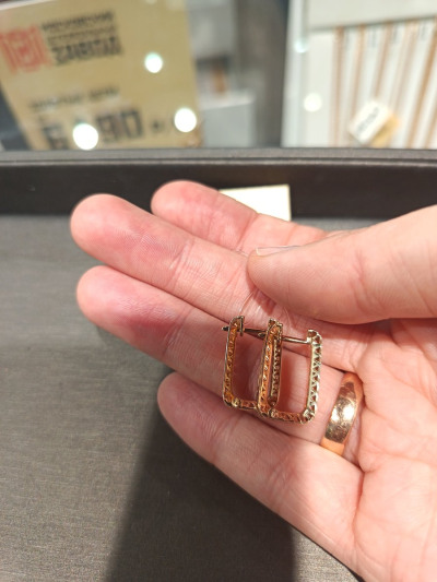 Классные и современные серьги. Лаконично, строго и нарядно. Замок хороший. Вес изделия 3.45гр. На ушке не ощущаются. Неизбитый вариант.