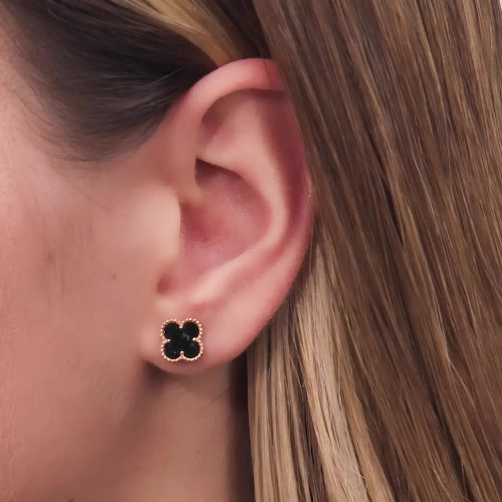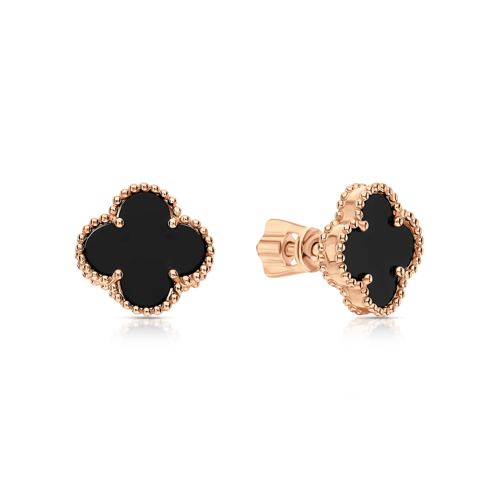 Золотые серьги с ониксом природным