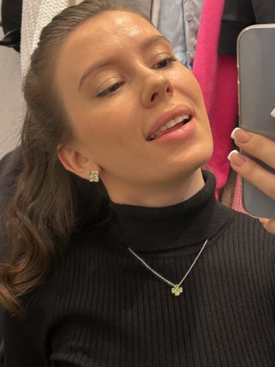 Не люблю пусеты, но эти очень удобные. Камень яркий.