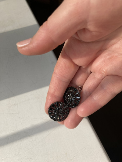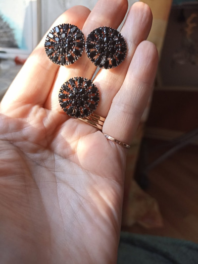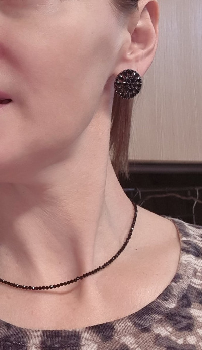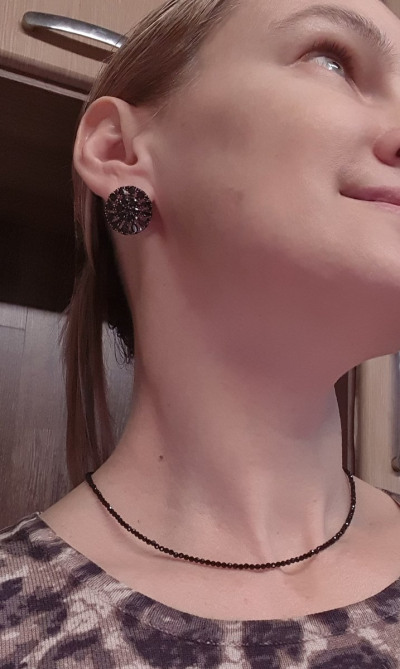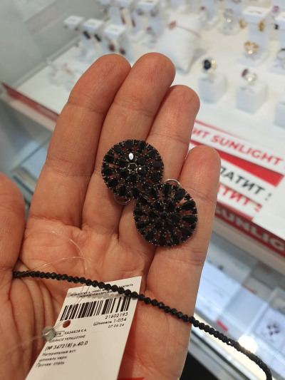 Искала к вечернему платью именно чёрные серьги. Выбор пал на натуральный Драгоценный камень шпинель (перед этим естественно прочитала про него)-невероятной красоты камень. Подбирали разные варианты, но остановилась именно на этих. И размер не очень большой, но очень заметные. Невероятно мерцают, играют на свету. Моё восхищение! К ним же случайно заметила шейное украшение со шпинелью. Примерила-и всё стало на свои места. Идеально! Нежно, гармонично, лаконично и главное очень элегантно и неналяписто. Спасибо Sunlighte за огромный ассортимент и хорошее настроение.