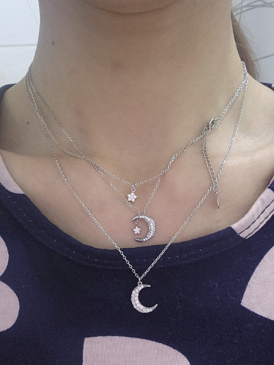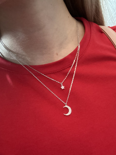 Очень нежное украшение. Двойная цепочка . подвеска звезда и луна