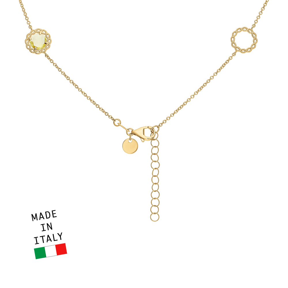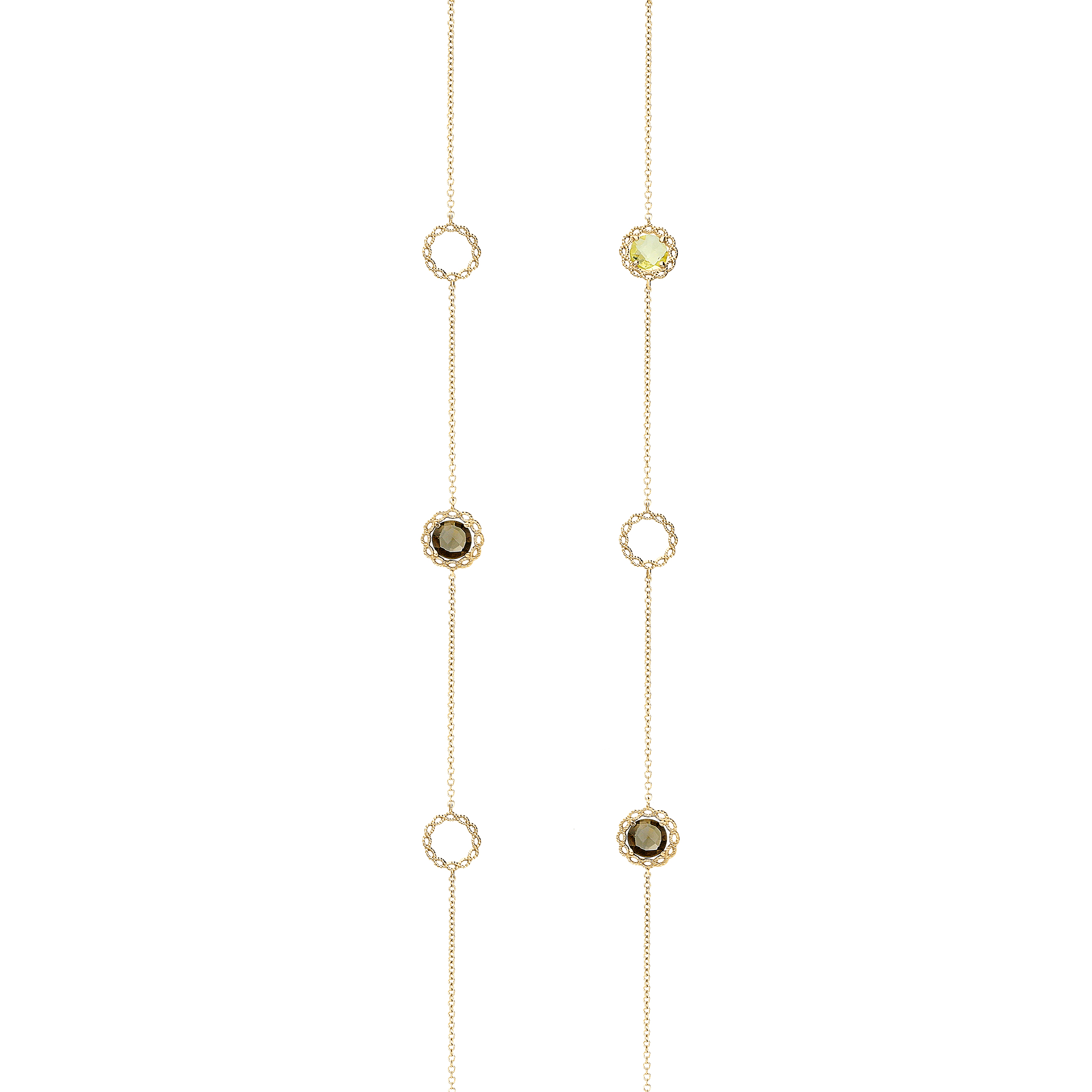 Роскошь, которая поражает воображение. Шейное украшение из жёлтого золота 585 пробы со вставками из дымчатого и лимонного кварца выполнено лучшими итальянскими ювелирами. Стильный дизайн не оставит ни одну покупательницу равнодушной. Италия славится своим высоким ювелирным искусством. В коллекции Золото Италии Вы найдете необычные, стильные, шикарные украшения выполненные в современных технологиях.