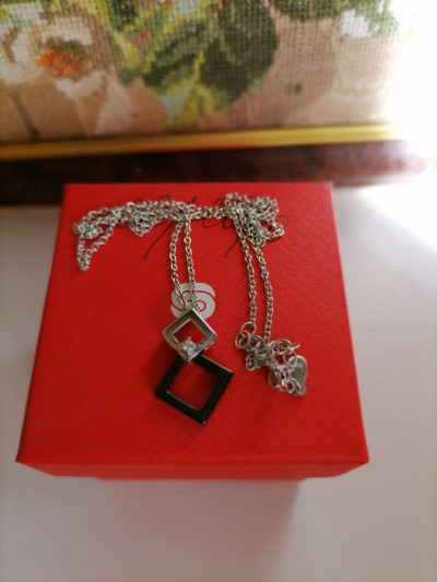 Размер цепочки регулируется, интересная геометрия, подвеска лёгкая интересная, есть такие же серьги в комплекте