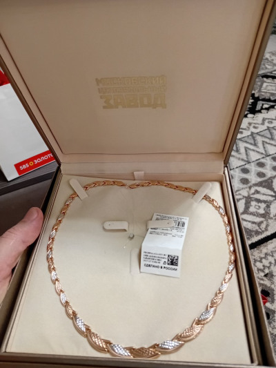 Супруг подарил на день рождения это роскошное колье 🩶. Смотрится достаточно аккуратно, интересно и со вкусом. Скорее парадно-выходной вариант. Вес 13,88 при длине 45 см. Я очень довольна, такое колье украсит любую женщину.