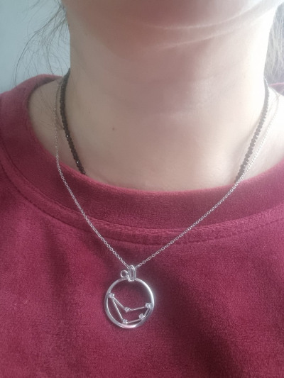 Давно хотела украшение со своим знаком зодиака. Увидела на сайте, влюбилась и пошла за ним. Из минусов - часто перекручивается знак на кулоне, но это не критично