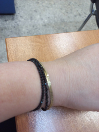Красивое украшение! Купила 45-50 см на шею и 40 см в два оборота на руку. Камни переливаются. Единственный минус, что сталь, а не серебро