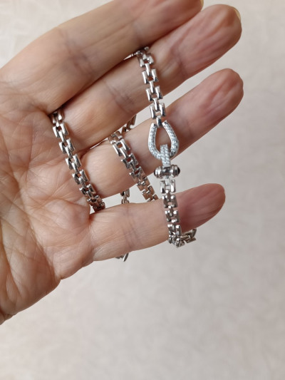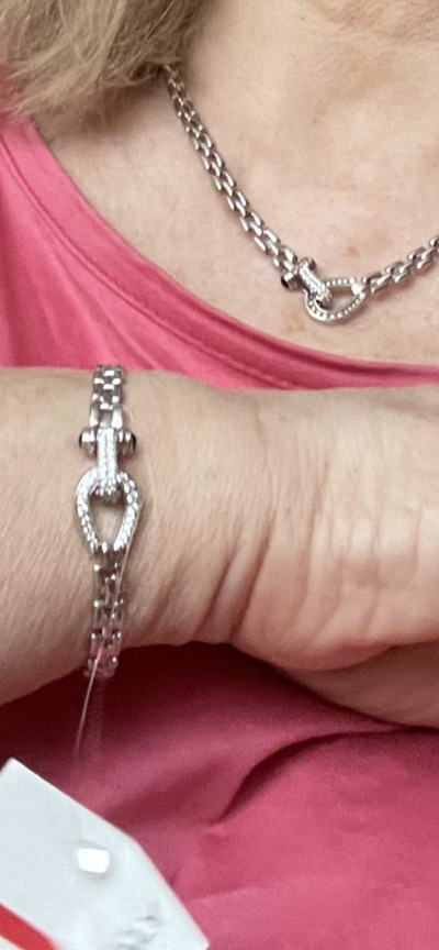 Вот такой красивый комплект , производство Италия. Сначала купила цепочку, потом добавила браслет. Фианитики мелкие, смотрятся как бриллианты