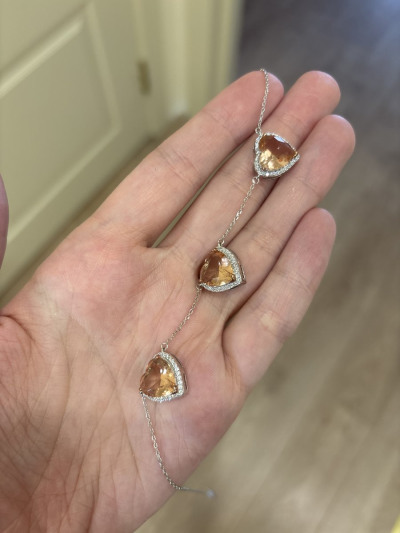 Оооочень красиво блестит, выглядит дорого, цвет камней необычны, что то между светло коричневым и персиковым