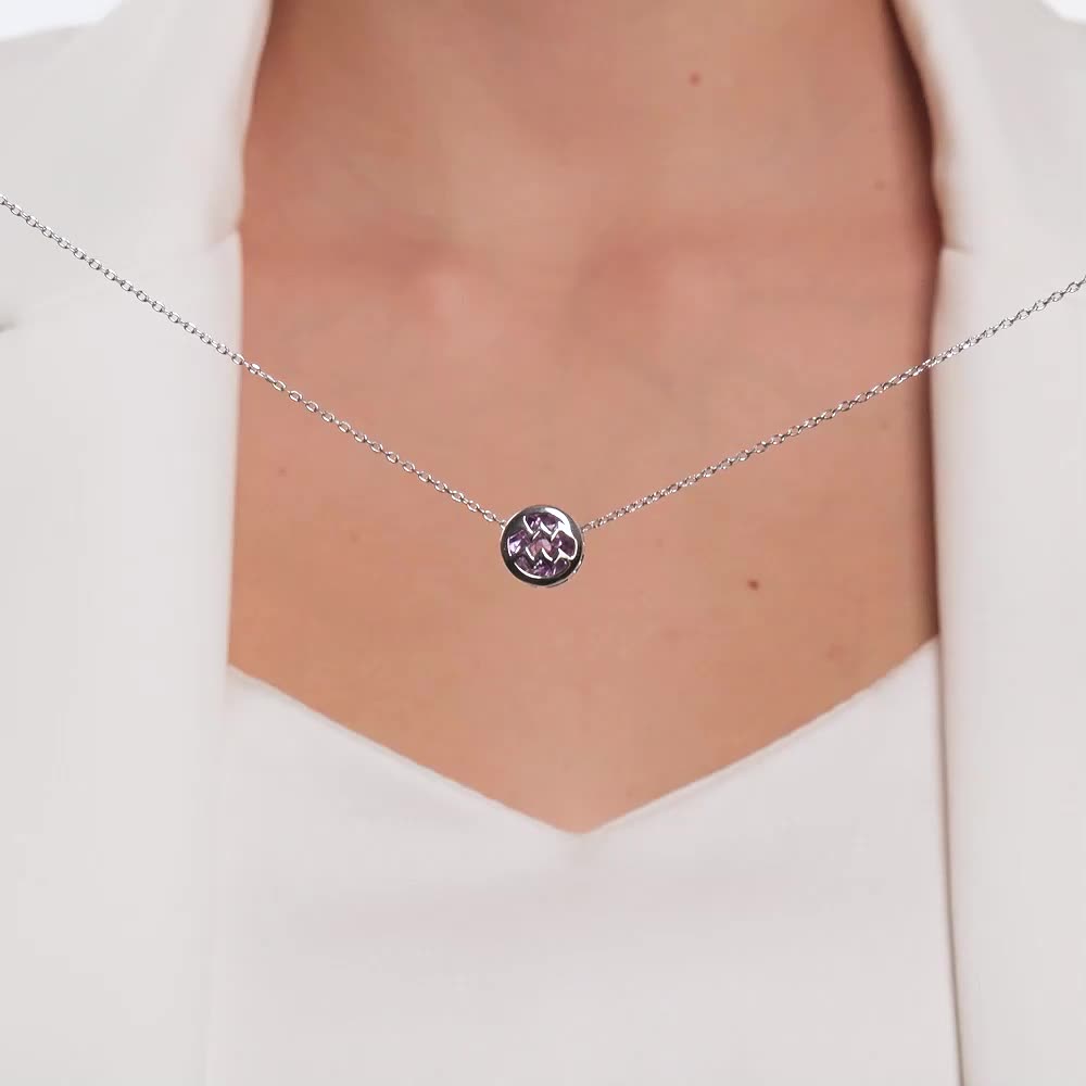 Серебряное шейное украшение с аметистом природным Водолей