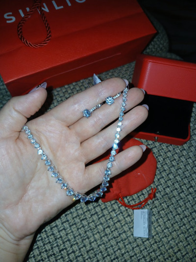 Супер блестит и переливается как бриллианты,увесистое!Покупалось дочери на свадьбу!