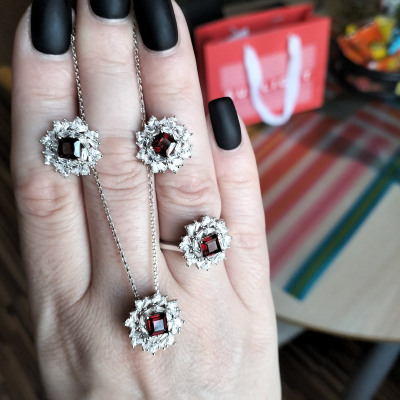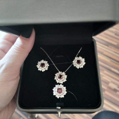 Нежное шейное украшение, все вставки блестят, цепочка тоненькая, но прочная. Рекомендую к покупке весь комплект, смотрится шикарно