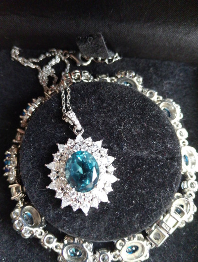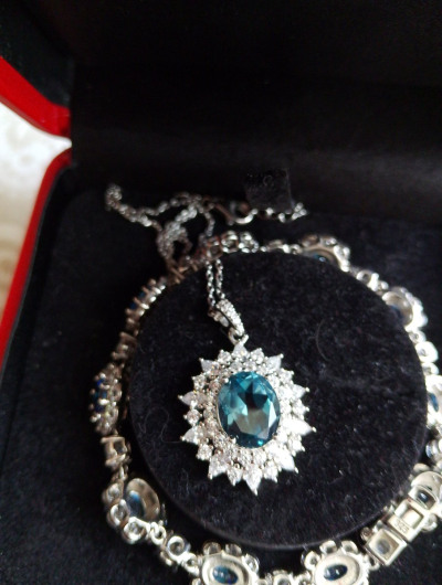 Серебряная окантовка Лондон топаза примерно в 3 карата с ярчайшими фианитами является практически эталоном в "ювелирке"!!! Сам Лондон топаз виден метров с 15-ти! А само украшение может стать в один ряд с шедеврами Екатерининских времен!