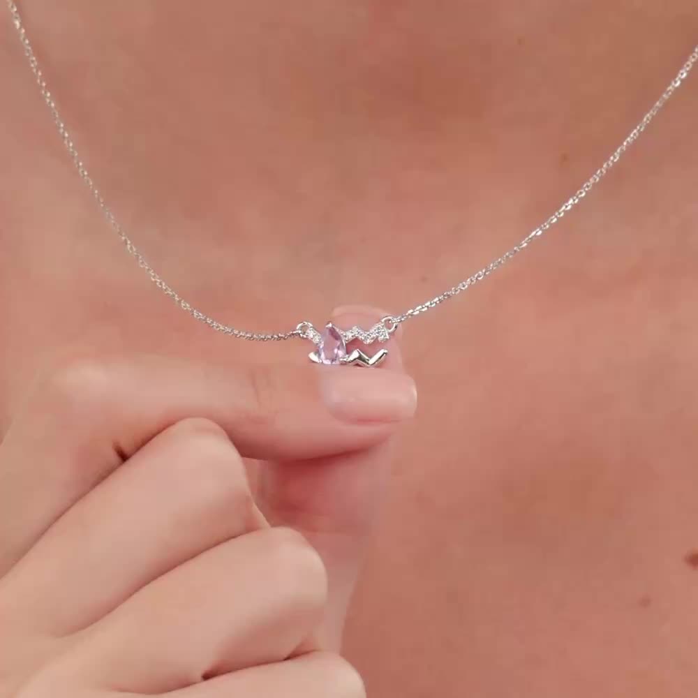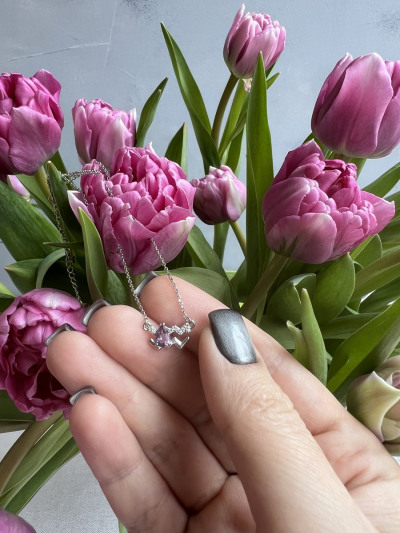 Серебряное шейное украшение с фианитами и аметистом "Водолей"