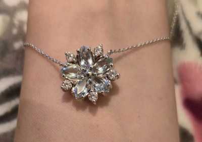 Красивая, похожа на снежинку❄️, понравилась, смотрится богато, похоже на белое золото, тяжеленькая, привлекает внимание окружающих!