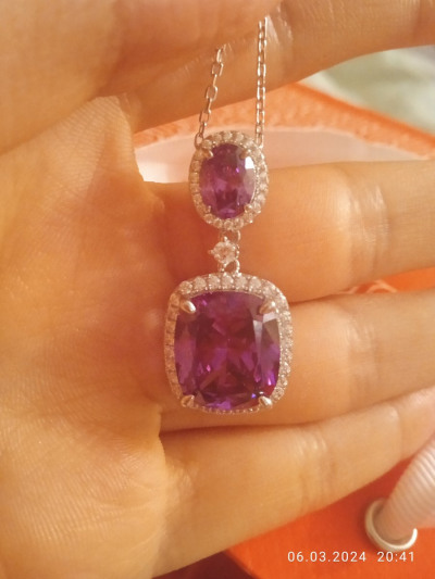 Крупное шейное украшение с дополнительными звеньями на цепочке для уменьшения или увеличения ее величины, что является большим плюсом. Камни яркие насыщенного фиолетового цвета . Рекомендую к покупке весь комплект для праздничных мероприятий.