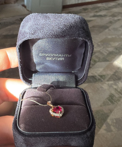 Золотая подвеска с бриллиантами природными и рубинами выращенными