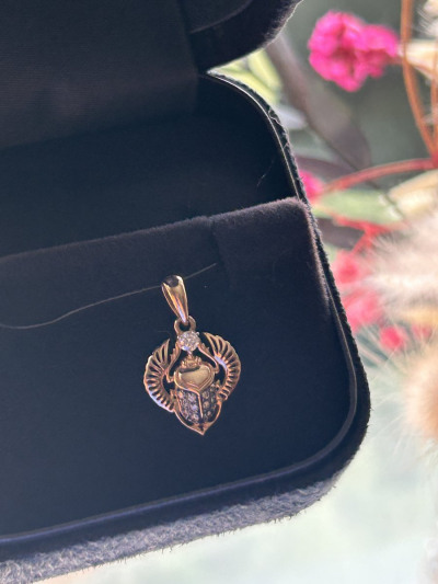 Золотая подвеска 585°с бриллиантами Смотрится интересно; высота 19мм., ширина 12мм.Рекомендую иметь такой оберег!