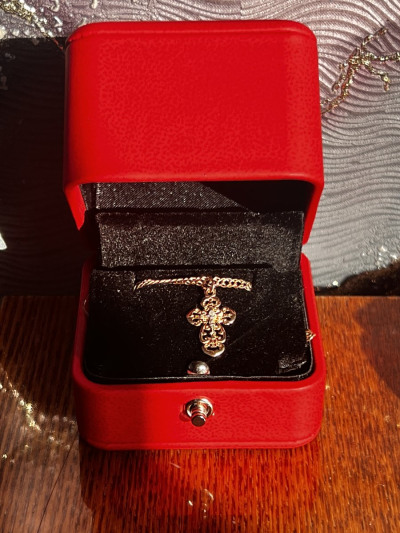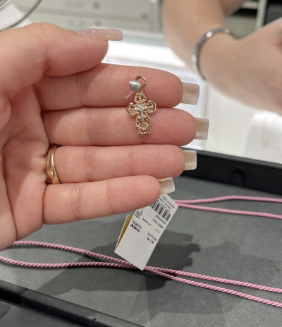 Очень красивый крестик. Нежный, для девочки самое то. Нет острых углов и неровностей, не будет цепляться за одежду. Покупкой довольна, рекомендую