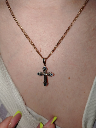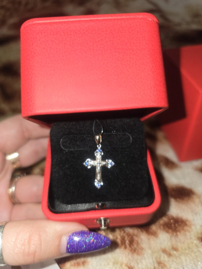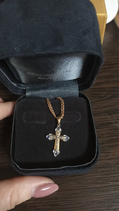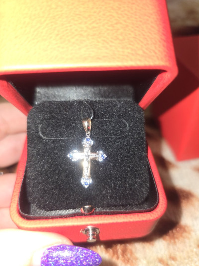 Ооочень красивый православный крест. Четыре сапфира и отделка белым золотом-шикарно и очень благородно