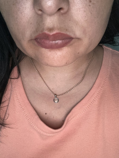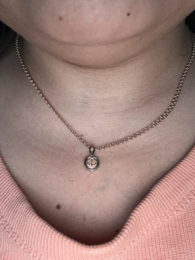 Читала, что подвеска маленькая, но все равно удивилась насколько она кроха) буквально 3 мм в диаметре добавить и идеально. Красивая и универсальная за счёт комбинированного золота.